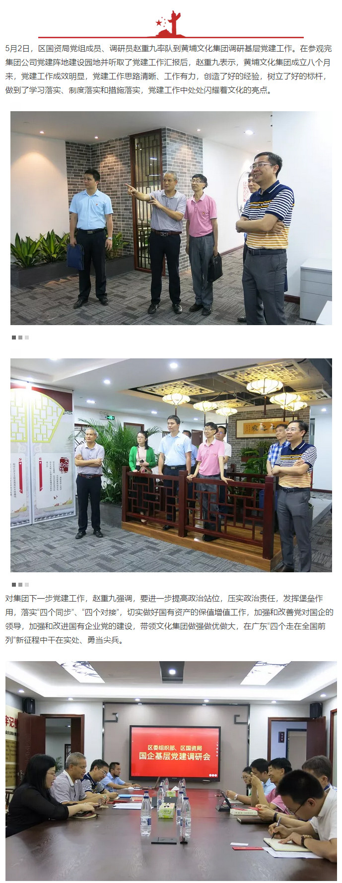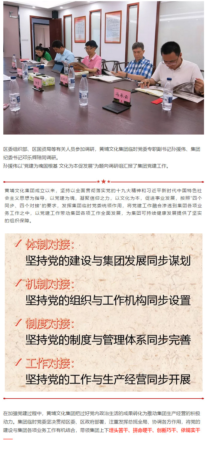 抓好黨建也是釋放國企生產(chǎn)力 ——區(qū)委組織部、區(qū)國資局調(diào)研黃埔文化集團(tuán)黨建工作